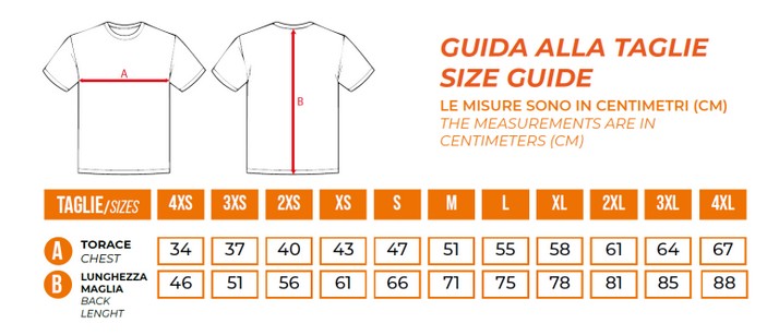 erhältlich in 16 Farben und in den Größen: 4XS, 3XS, 2XS, XS, S, M, L, XL, 2XL, 3XL und 4XL